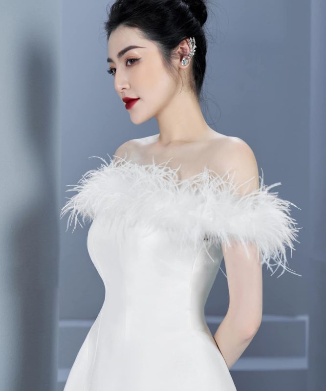 Váy trễ vai đính lông dáng dài PÁRAMO
